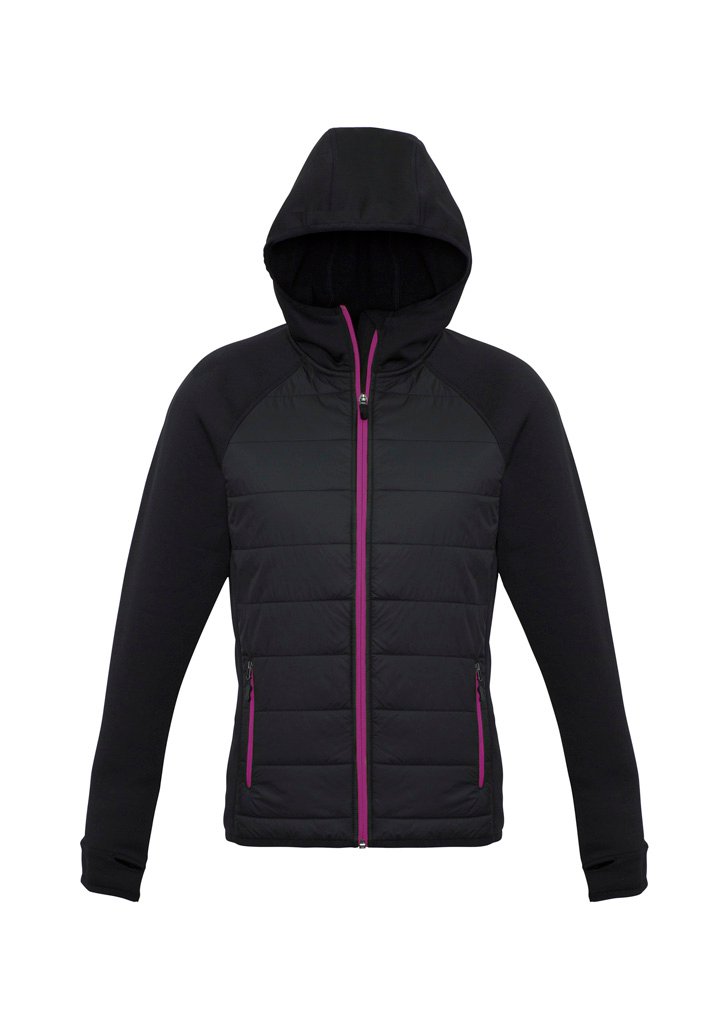 Power up your look with this hybrid hooded jacket that provides excellent warmth, flexibility and style for any cold-weather activity. Quilted, lightweight insulation on the front keeps your core warm while sleeves and back feature a stretch fabric for ultimate comfort and movement freedom.